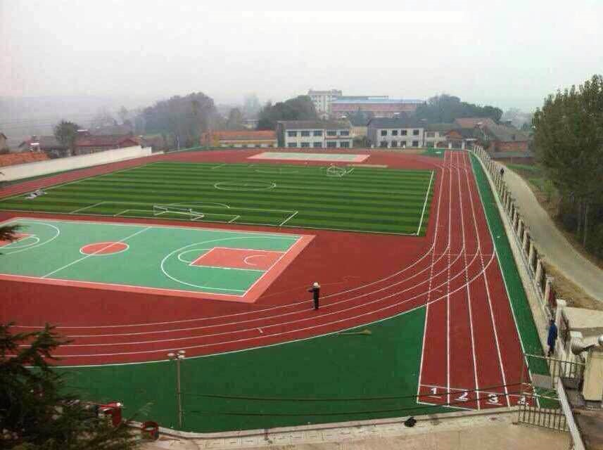 透气型跑道6000平方、硅PU球场2000平方,草坪4000平方