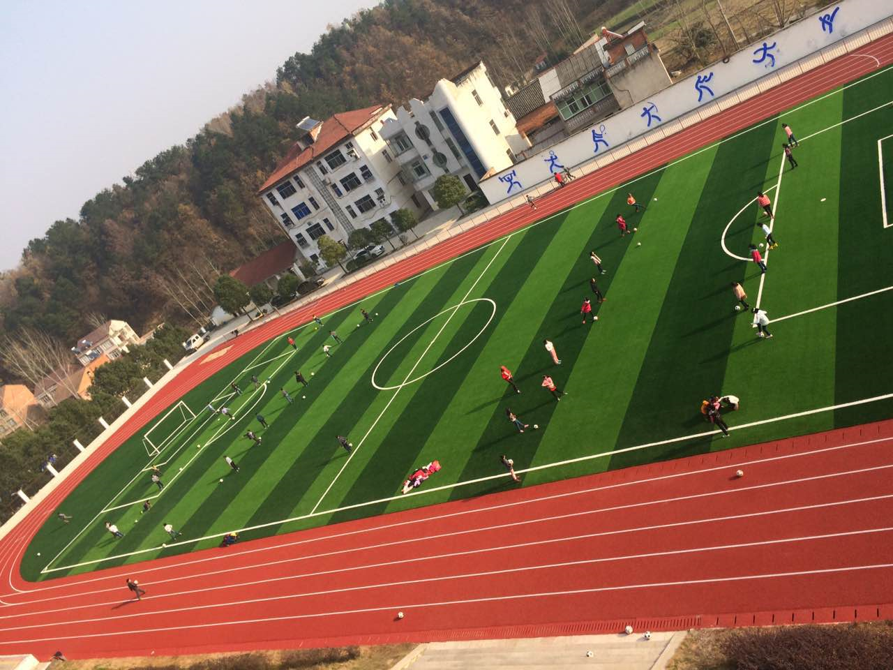 环保型透气跑道4000平方,S型50高足球草3800平方