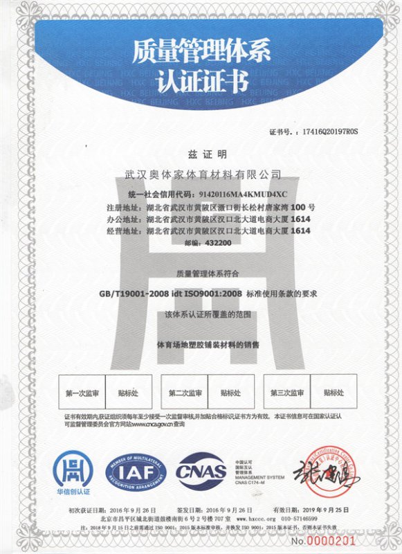 质量管理体系认证证书