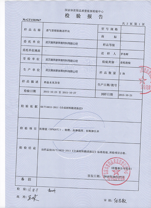 透气性样块检测报告1
